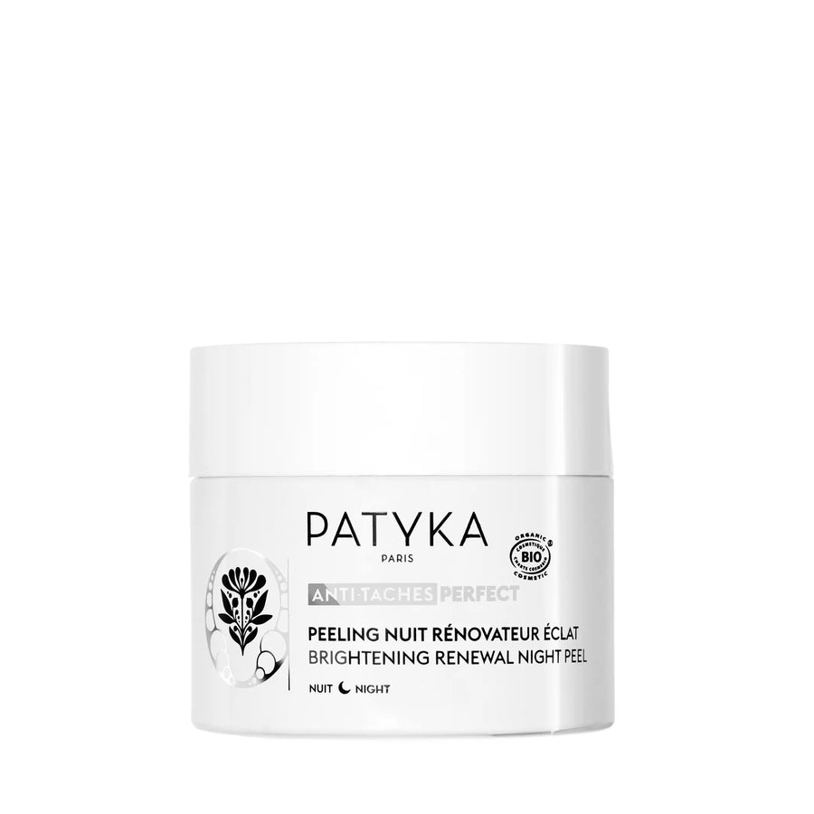 Le Peeling Nuit Rénovateur Éclat de Patyka est un soin exfoliant intensif qui agit pendant la nuit pour renouveler la peau en profondeur. Enrichi en acides AHA tels que l'Acide Citrique, l'Acide Phytique et l'Acide Lactique, il exfolie la peau en douceur, élimine les cellules mortes et estompe les taches. L'extrait de Fougère des Mers cible spécifiquement les taches pigmentaires, tandis que le Bisabolol Végétal apaise et protège la peau pour éviter les irritations.