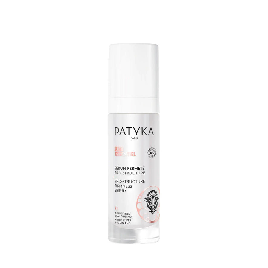 Patyka Pro-Structure Firming Serum is an intensive firming treatment that works to restructure the skin and smooth wrinkles. Formulated with powerful active ingredients such as plant-based Retinol-Like and Angelica Active Cells , this serum boosts collagen production and restores elasticity. Enriched with Peptides and Red Ginseng , it tones the skin while revitalizing skin tissues for a fatigue-relieving and rejuvenating effect.