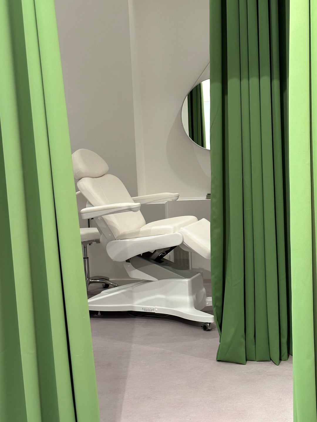 If we start with the treatment area, I wanted cabins that allow customers to feel good. It was also very important that the team be able to work in the best conditions. I wanted to decompartmentalize the environment and the choice of curtains was the most appropriate.